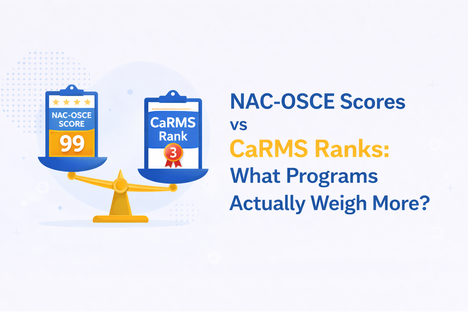 NAC-OSCE and CaRMS ranks both signal clinical readiness, but programs prioritize differently by discipline and stream – pass alone won’t cut it for competitive spots. Decode what matters using real match data and mccQbank prep to optimize your app.